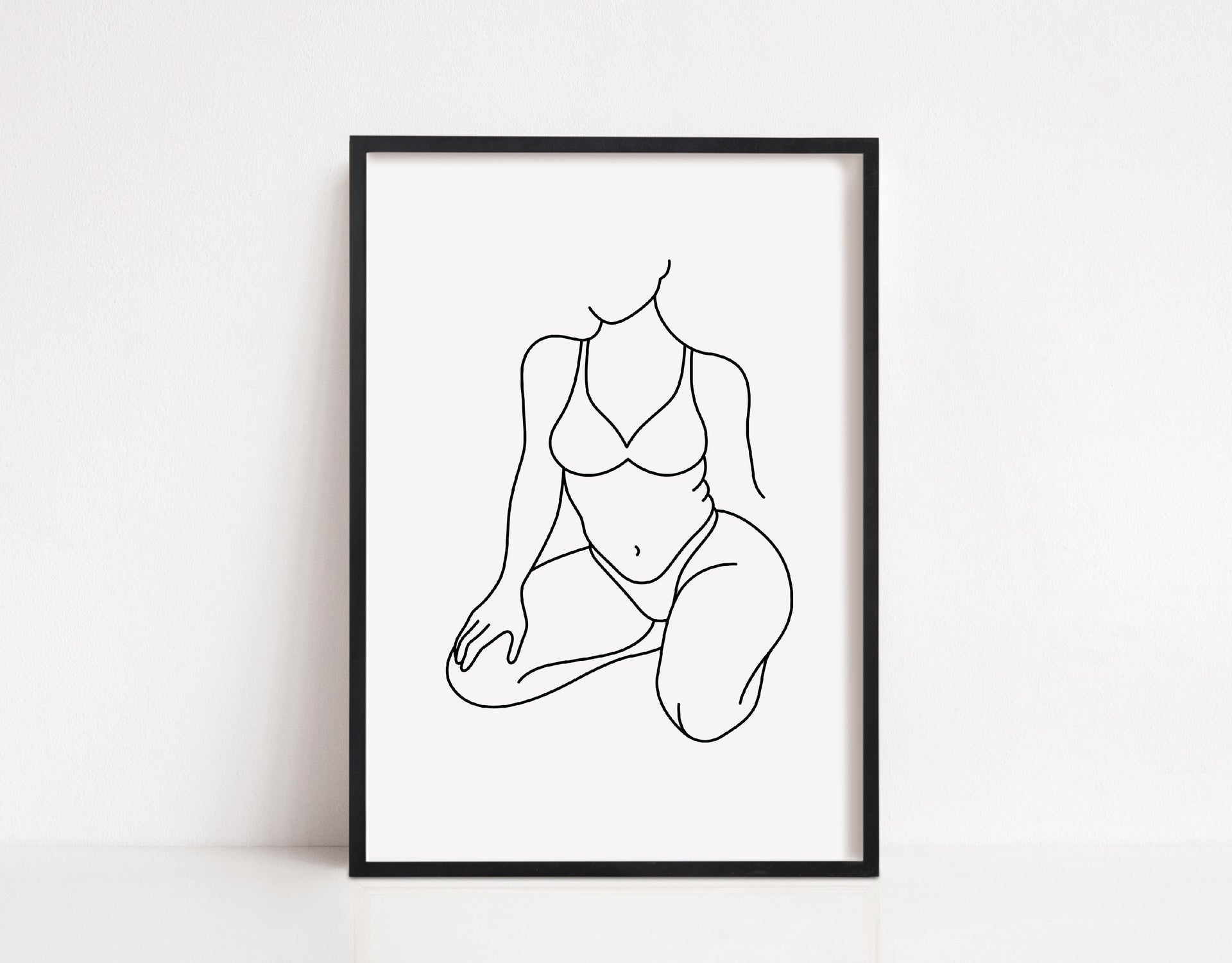 Drawing Print Curvy Woman Line Art Drawing Self Love Print Dinky Designs