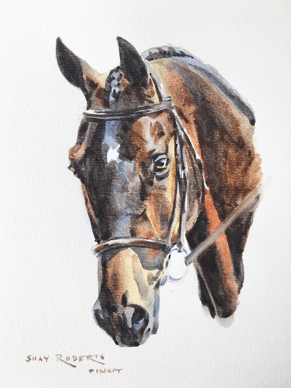 Horse Portrait Watercolor Custom Commissioned Portrait 5x7 8x10 Watercolor Painting Horse Gift Etsy